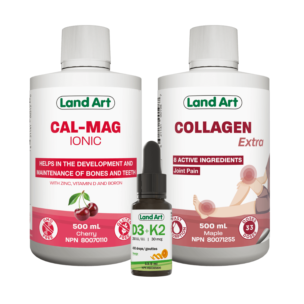 Land Art’s Ionic Cal-Mag is a liquid formula that’s very easy and quick to absorb, as its minerals are already available in ionic form; they don’t require digestion to be absorbed. Designed to meet the increased calcium and magnesium needs of adults, this product is ideal for people 50 and older, as their digestion is less optimal. Thanks to its optimal calcium/magnesium ratio, combined with vitamin D, it promotes better absorption and effectively supports bone and muscle health.