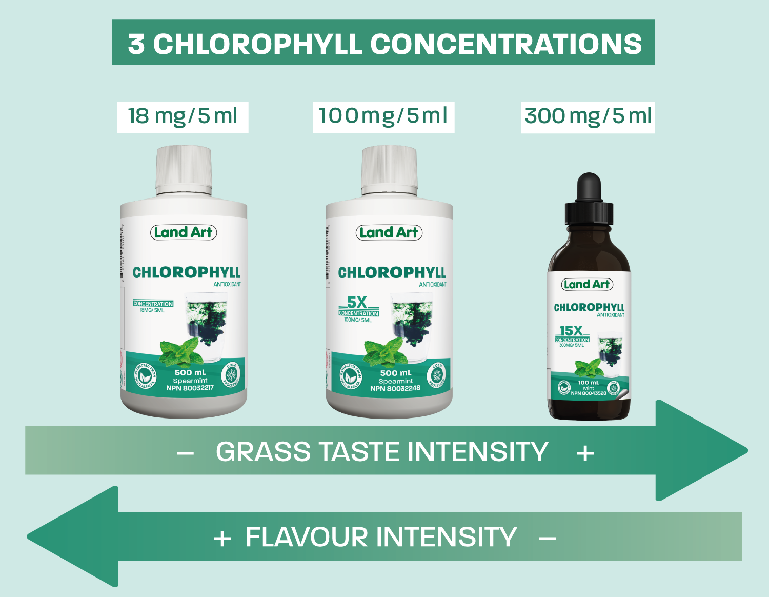 The difference is that the higher the concentration you take, the more chlorophyll there will be per serving. That said, the higher the concentration, the more the grassy taste of the chlorophyll will overpower the flavour. All the different concentrations will ultimately provide the same benefits, but it’s simply that the higher the concentration, the less likely it is necessary to take a large amount of the product per day. For new chlorophyll users, we recommend starting with the regular concentration and then trying to increase if desired, to allow time to get used to the grassy taste of the chlorophyll.