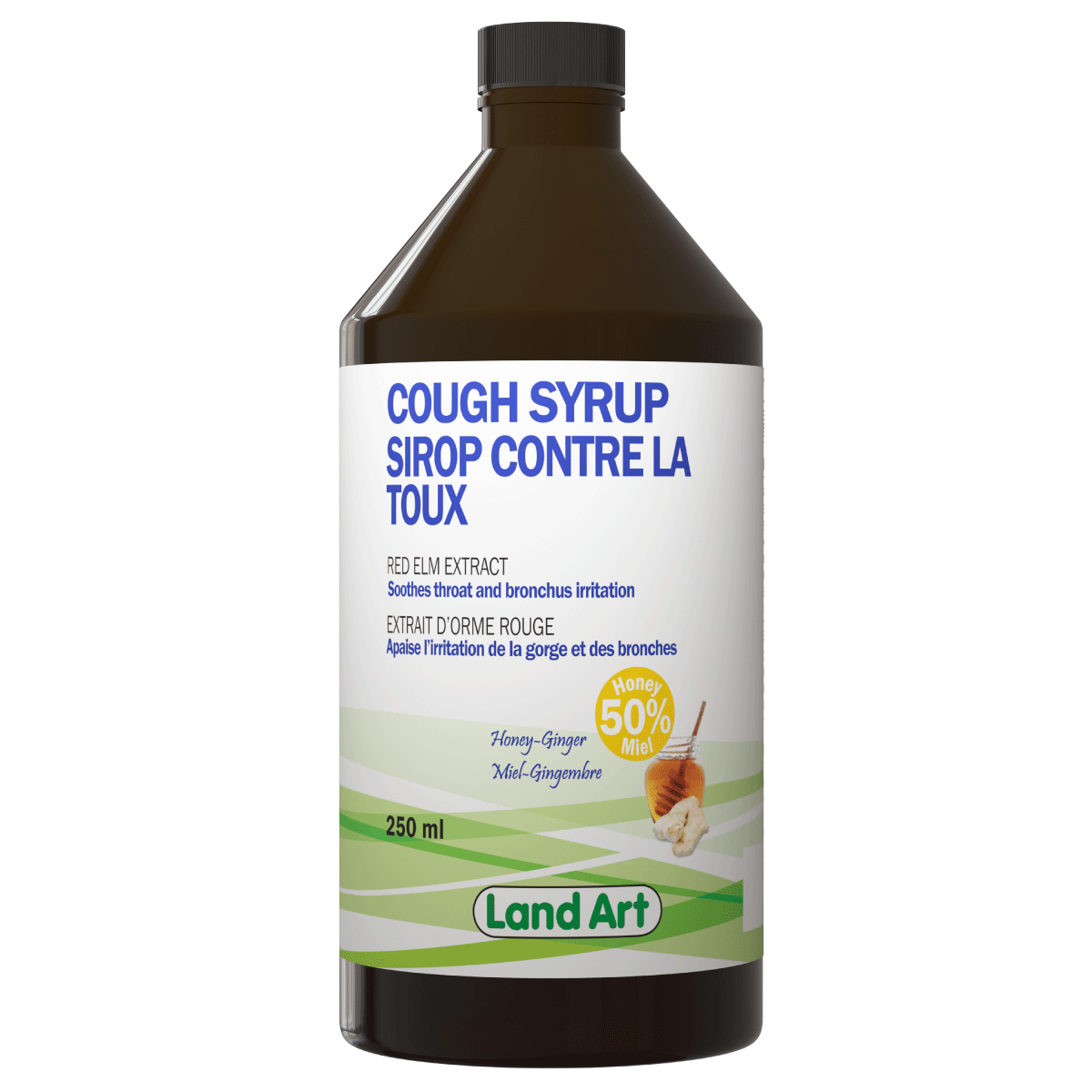 Le Sirop contre la toux de Land Art est une formule naturelle et apaisante, conçue pour soulager l’irritation de la gorge et des bronches, tout en étant adaptée à toute la famille. Il contient un extrait d’orme rouge (Ulmus rubra), reconnu pour ses propriétés émollientes et protectrices des muqueuses, combiné au miel et à une touche de gingembre, pour un goût réconfortant et une action renforcée.